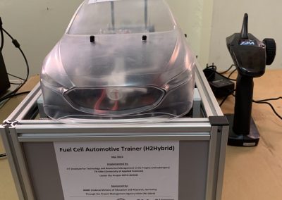 Convinced by the importance of those laboratories for the training and capacity development of the students at UAM, specially enrolled in four master programmes under the theme of energy and green hydrogen, the ITT team supported UAM in expanding those laboratories. In May 2023, additional laboratories for the energy generation from renewable energy sources in hybrid mode were set up. Simulated examples included also the fuel cells for mobility applications. The laboratory system further included a wind turbine with a rated power of 400 W and solar of approx. 2 kW. Those energy systems can charge the batteries or fill the metal hydrogen canisters with hydrogen produced in an included electrolyser with an output of up to 200 l/h.